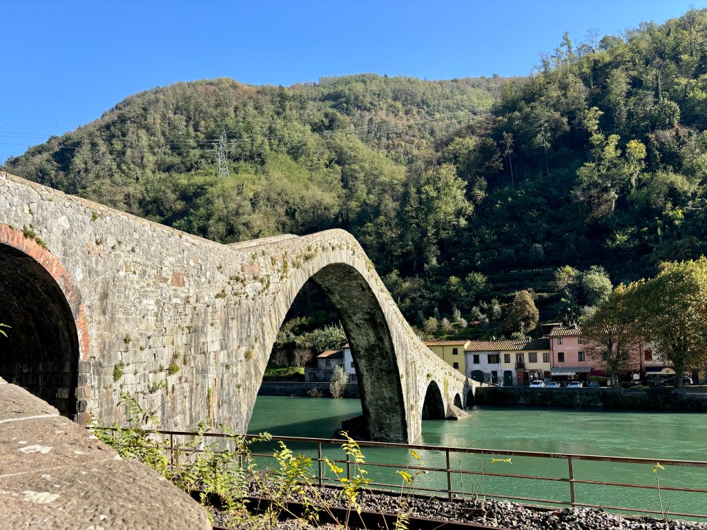 Our first stop was to get a better look at a 12th century bridge known by multiple names with variations of the history and origin. Matilda’s Bridge, Maddalena’s Bridge, or Devil’s Bridge all refer to this gracefully arching stone bridge that has withstood the ravages of centuries. While there are myriad devil bridges around the world, some natural and many man made. This particular bridge apparently is in a style known as “donkey back”, a style frequently used in medieval Tuscany marked by the asymmetry of its aches. The legend involves an overly ambitious mason who realizes he is not going to meet his deadline and makes a pact with the devil. In exchange for completing the bridge overnight, the mason has agreed that the devil will take the soul of the first to cross the bridge. Wracked with guilt for striking such a deal, the mason confesses to some local priest and they conspire to have the first to cross be an unsuspecting local pig. Apparently this subterfuge worked, the devil was thwarted and left the man and bridge safe. Now, I am no medievalist, but this seems like a great legend to explain the phenomenon of “deviled ham”.